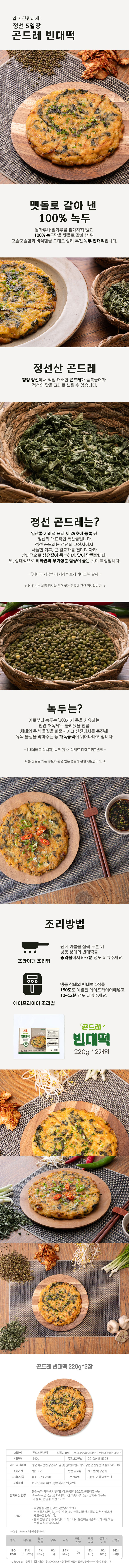 100% 녹두를 맷돌에 갈아 만들어 포슬함이 살아있는 곤드레 빈대떡, 강원 특허균주로 청국장 특유의 이취를 줄여 간편하게 즐길 수 있는 곤드레/김치 청국장 밀키트!